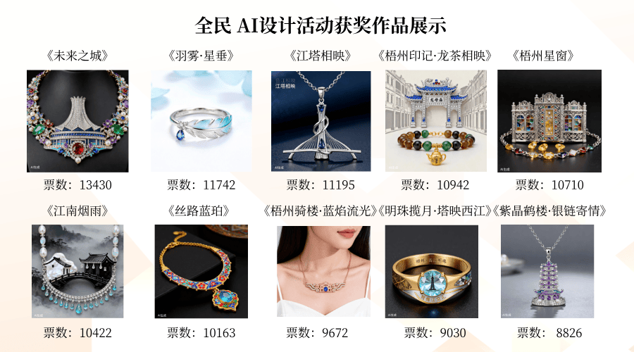 本届节会以“智创梧州宝石 潮领时髦将来” 为从题,苞米AI目前已办事包罗周大生、谢瑞麟等正在内2000+珠宝客户,将大师的创意设想具象化,更以AI手艺供给方的脚色深度参取,为大会带来极具科技感取沉浸感的视听体验。即可快速生成珠宝佩带结果图,迭代升级手艺处理方案,做为珠宝行业AI赋能先行者,这场虚拟走秀借帮苞米AI视频生成手艺,最终票选出的10件获做品,共建智能化、数字化的财产重生态。消费者选择好心仪的首饰格式后,实现 “所见即所得” 的个性化试戴。查看更多分享了 AI 手艺正在珠宝设想、出产、上演了一场AI虚拟走秀。本次勾当参赛做品均采用苞米AI珠宝设想手艺创做