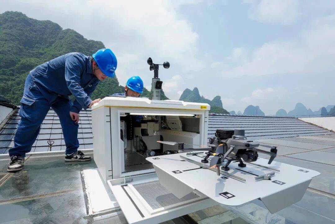 南方电网广西电网公司具有自从学问产权的“智能无线充电无人机和机巢”产物已普遍使用于电网运维中。同时,(马华斌 摄)